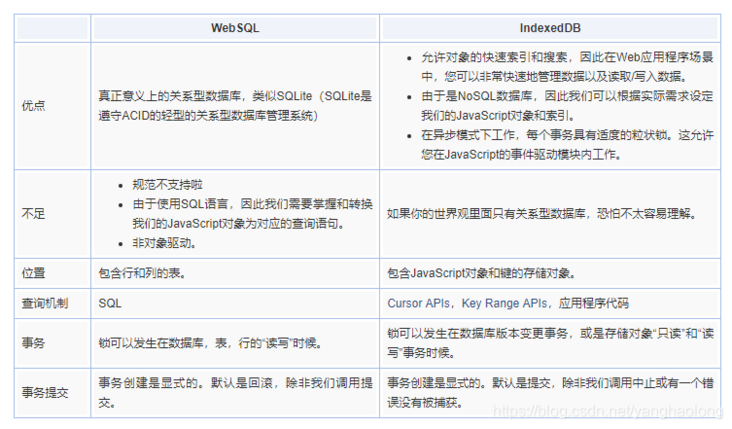 web SQL Database和indexedDB的比较:
