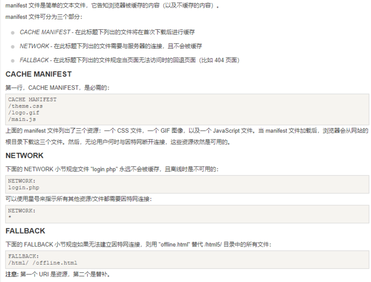 <html manifest="xxx.appcache"> //manifest文件的建议的文件扩展名是:".appcache"。