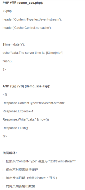 HTML5引入了一个从web服务器到web浏览器的事件流,称为服务器推送事件(SSE)