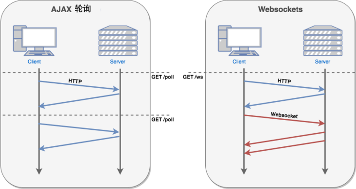 而HTML5 定义的 WebSocket 协议,能更好的节省服务器资源和带宽,并且能够更实时地进行通讯。