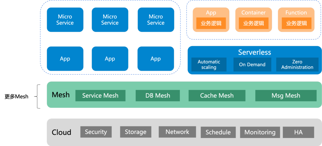 让我们畅想云原生背景下处于最理想状态的业务应用,就当是个甜美的梦吧: