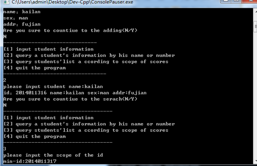 cout<<"Do you continue to query another student's information?(Y/N):";