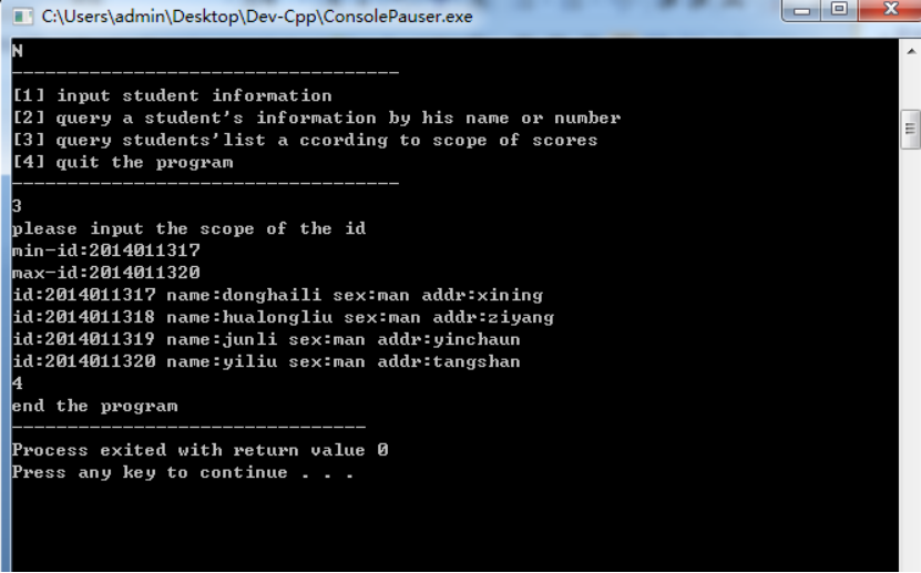 高级语言程序设计II 实验报告四学生学籍系统,使用c++