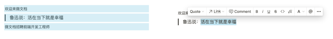 这会让一个前端同学马上把 block tree 和 dom tree 对比,block 和 dom 节点对比,反过来想,dom tree 可以表达所有的用户界面,理论上来说 block tree 也能完成大部份编辑器的需求,所以 notion 可以提供很多丰富的功能 。