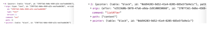 插入一个 block 也是走的 set 命令,其中 args 里面会说明版本号(version)为1,同时当前节点为文本(text)节点。 -