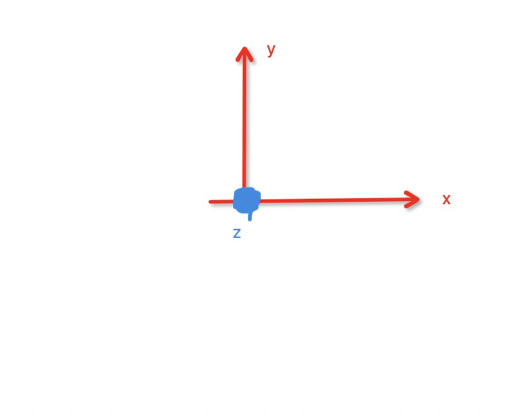 上图中, 观看这个三维坐标系的目光其实是在斜上方, 正常情况下在我们开发的时候z轴是正对着我们的眼睛的, 所以你只能看到z轴是一个点,