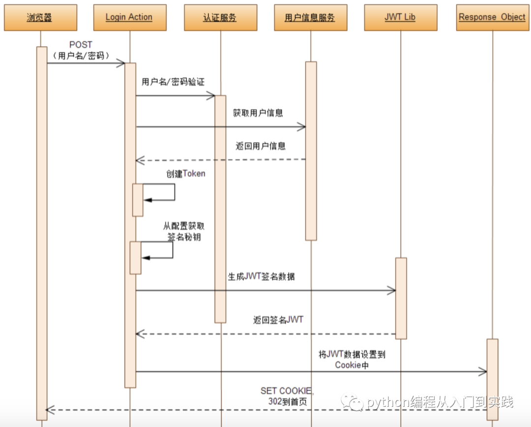 1.第一次认证:第一次登录,用户从浏览器输入用户名/密码,提交后到服务器的登录处理的 Action 层(Login Action)