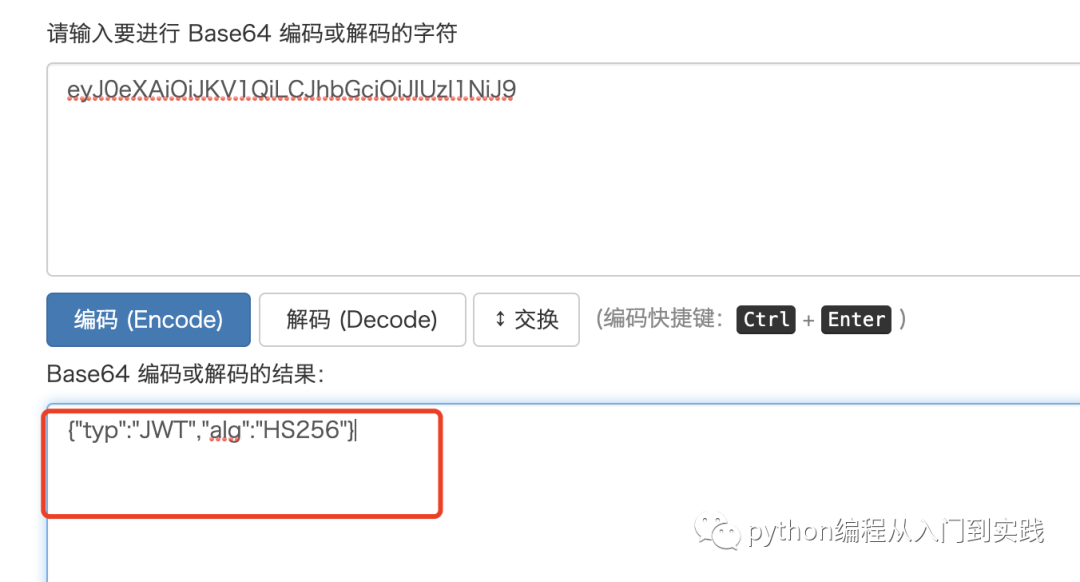 我们使用 base64 解析一下 eyJhbGciOiJIUzI1NiIsInR5cCI6IkpXVCJ9 这个子串 可以得到: