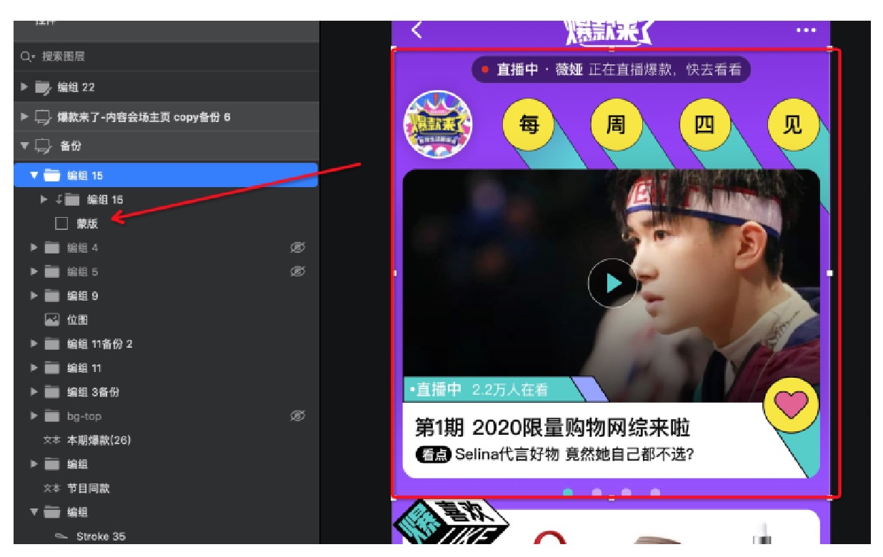 同在一个画板(Artboard)中的模块,第一层的子级必须是编组(Group),不要有非编组(Group)的图层