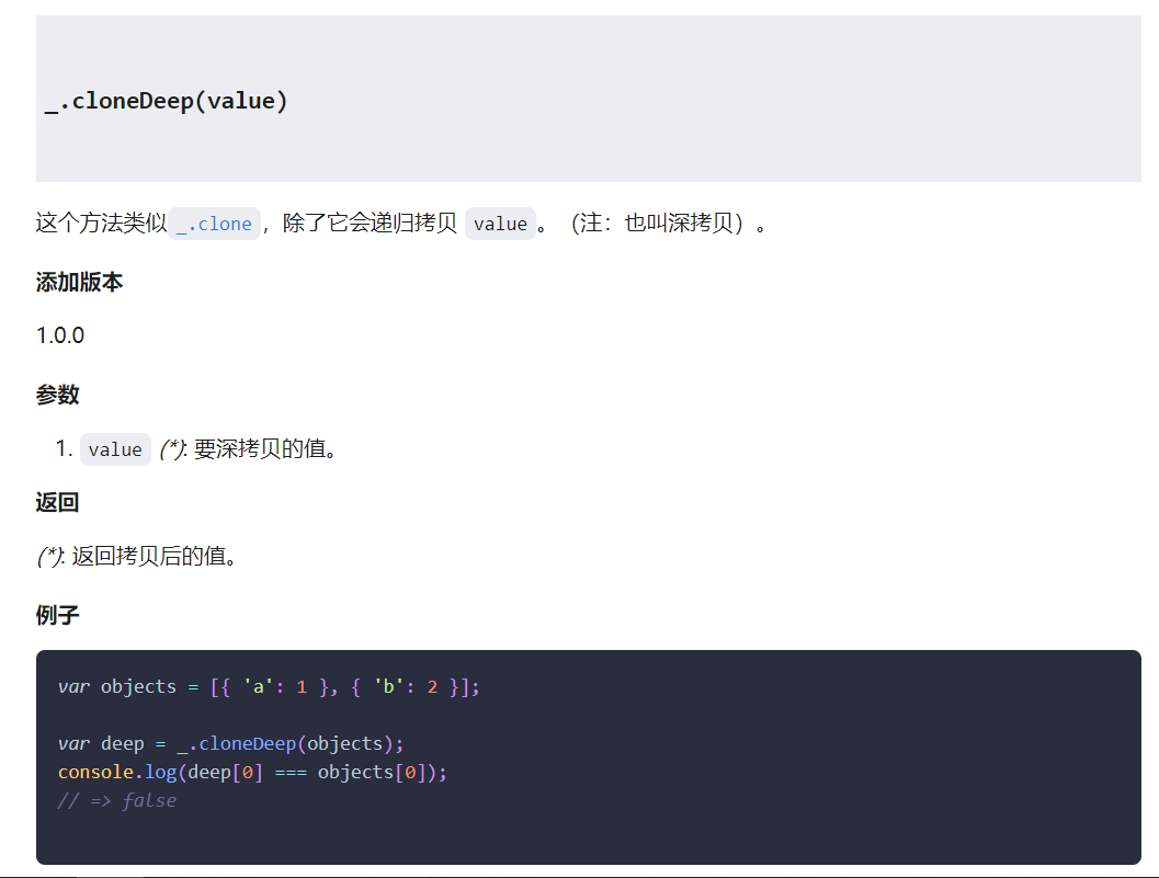 // 当value是引用类型的值,比如Object,Array,引用类型进行深拷贝也只是拷贝了引用地址,所以属于浅拷贝