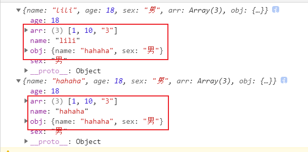 // 修改newObj其中一个值 , 另一个obj也发生改变