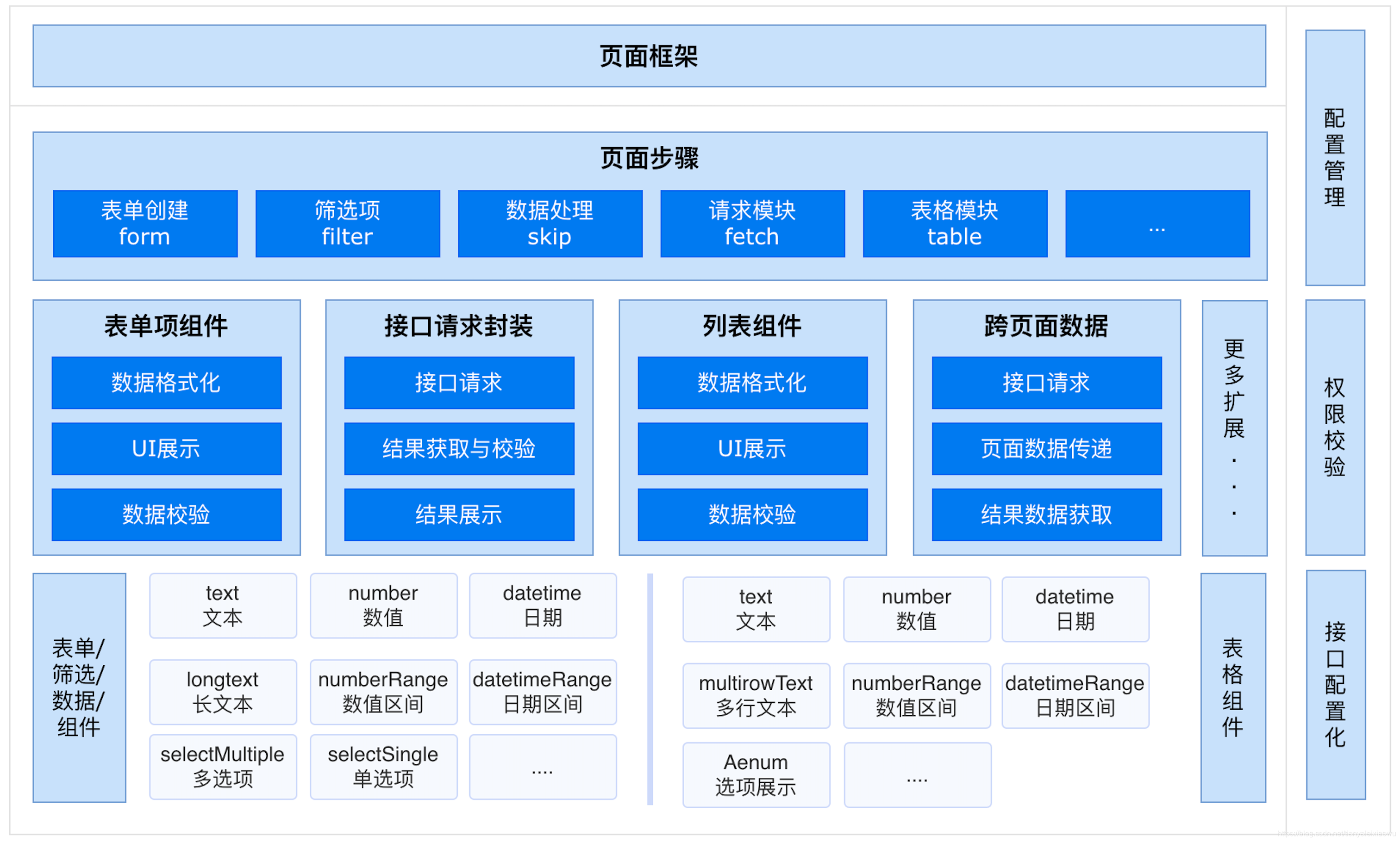 以中间件的形式抽离权限配置,配置文件存储,UI框架等模块实现在不同系统间的快速切换。