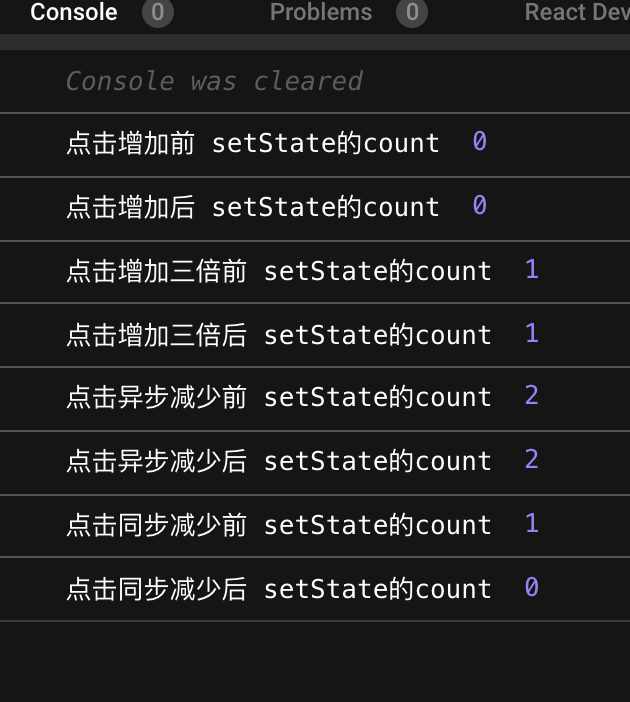 机灵的同学有疑问了,不是说在React管控下的setState一定是异步的吗?那么点击同步减少里的逻辑: