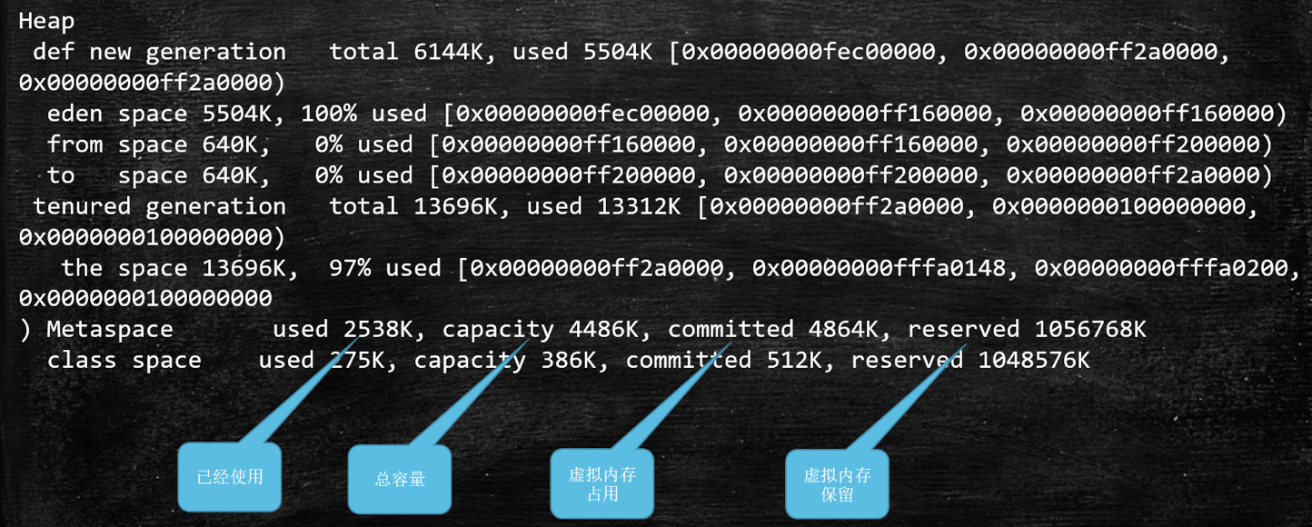 total = eden + 1个survivor(原因是survivor是复制算法,实际可用空间就只能是1个survivor)