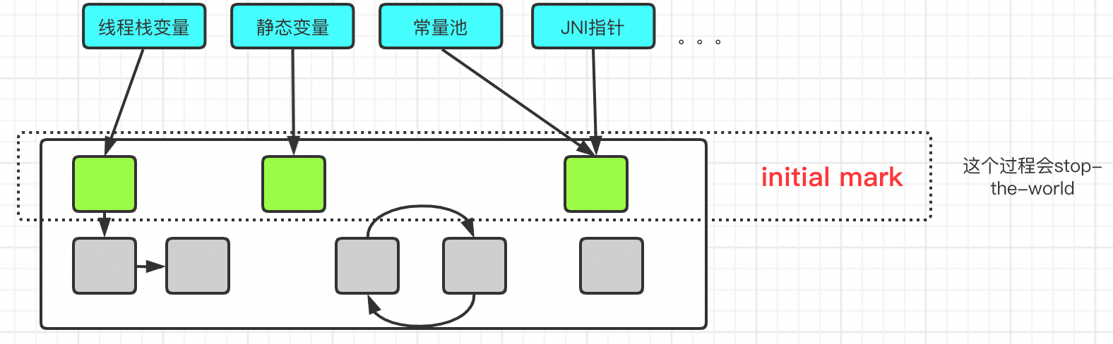 // initial-mark 混合回收的阶段,这里是YGC混合老年代回收