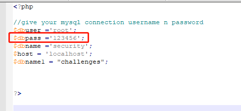 还有一步就是打开项目中的sqli-labs-master\sql-connections目录,找到db-creds.inc,把里面的数据库密码填上了。