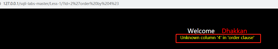 比如输入?id=2'order by 4%23,这里注意一下浏览器输入 # 需要 URL 编码一下,# 的 URL 编码就是%23