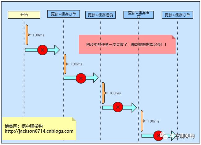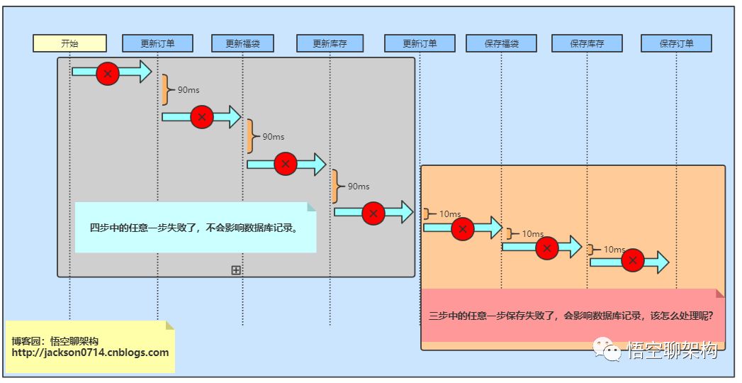 悟空:也就是说第一步顶单状态从未支付到订单成功已经执行成功了,但是第二步更新福袋的时候失败了,没有自动将第一步订单的状态给改回去?