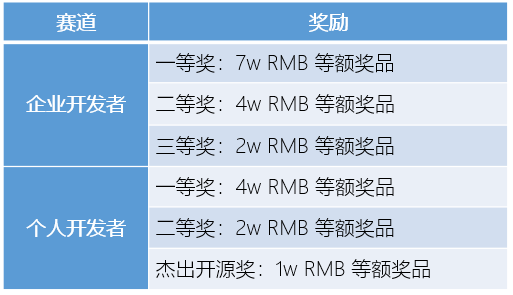 比赛面向全社会开放,分为个人开发者赛道和企业开发者赛道: