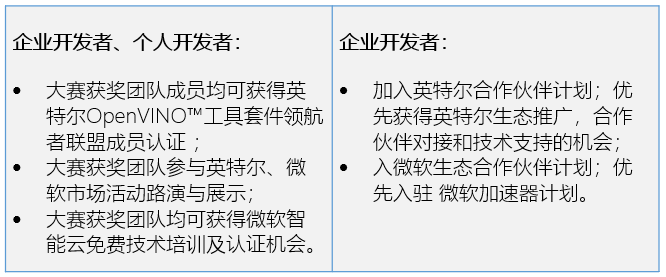 另外,微软和英特尔针对企业开发者/个人开发获奖者还提供了额外的认证及扶持。