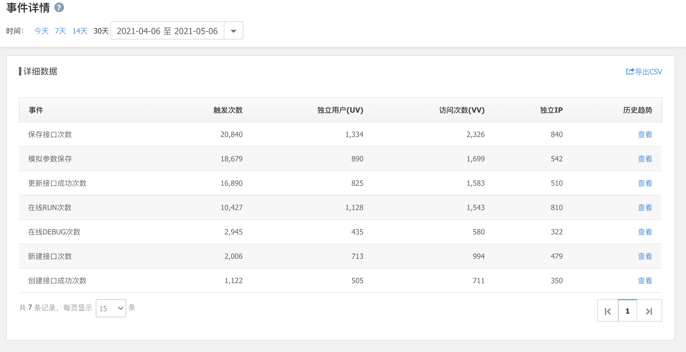2. 统计的次数表示Rocket-API的使用情况,作为项目的稳定性的依据