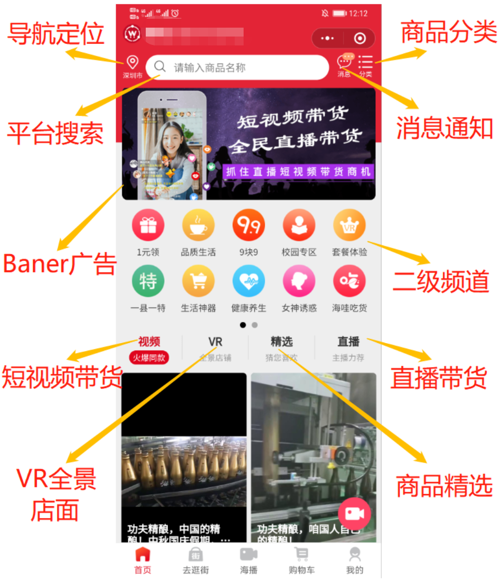 消息通讯、用户订单、用户钱包、积分中心、用户分享