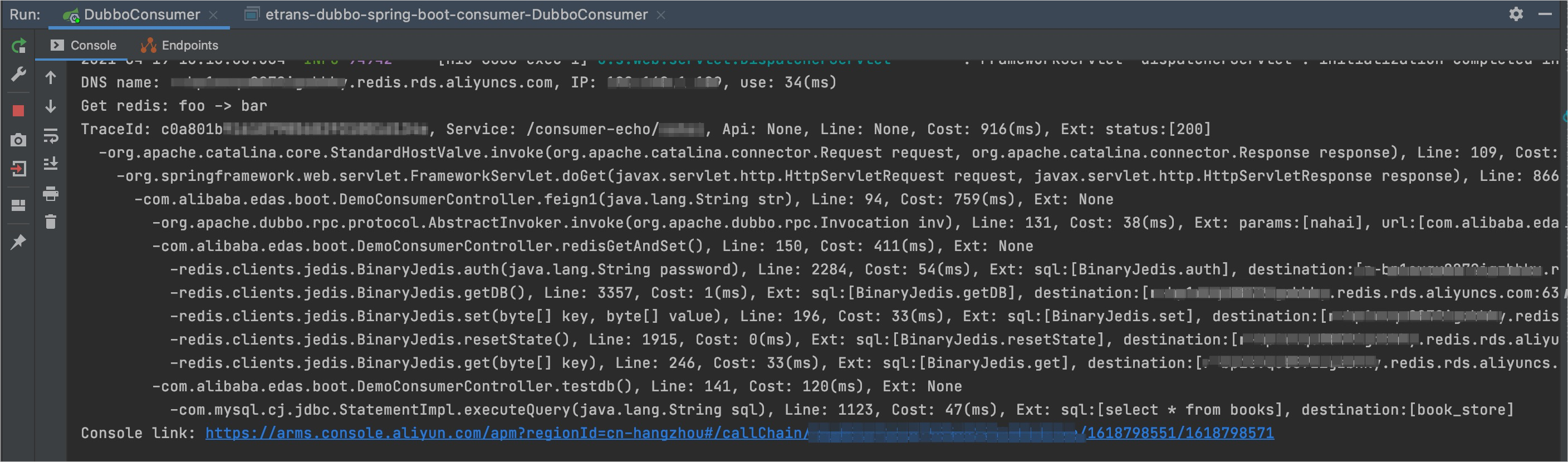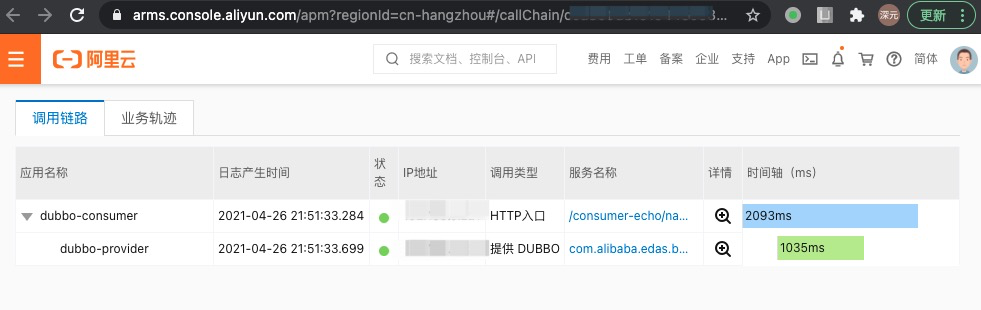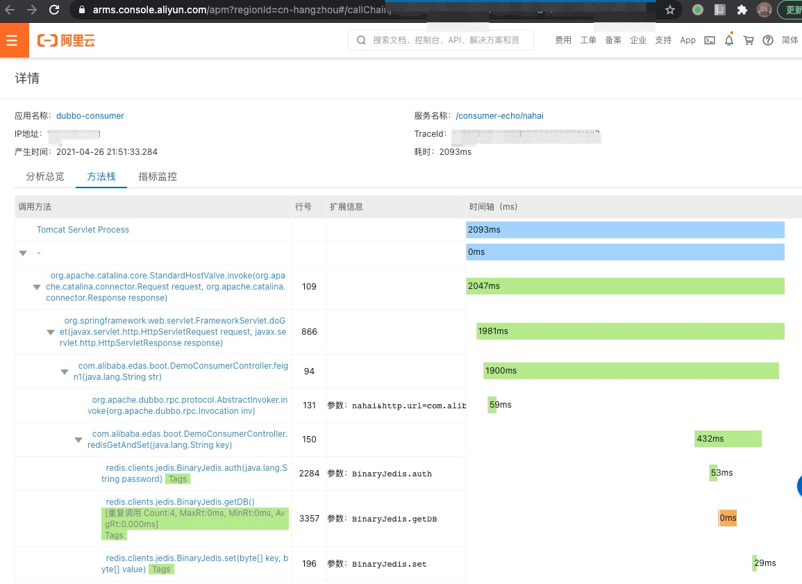 • Console link:ARMS控制台上收集的此链路信息,可点击此链接直接查看全链路信息。