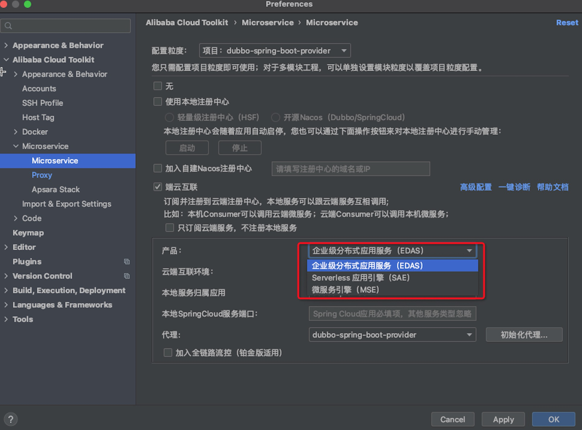 因此,无论你是EDAS用户、SAE用户还是MSE用户,都可以使用端云互联能力来提高上云的开发效率。在插件上,这三个产品的配置步骤是基本相同的,除了产品自身的差异性以外。配置页如下所示: