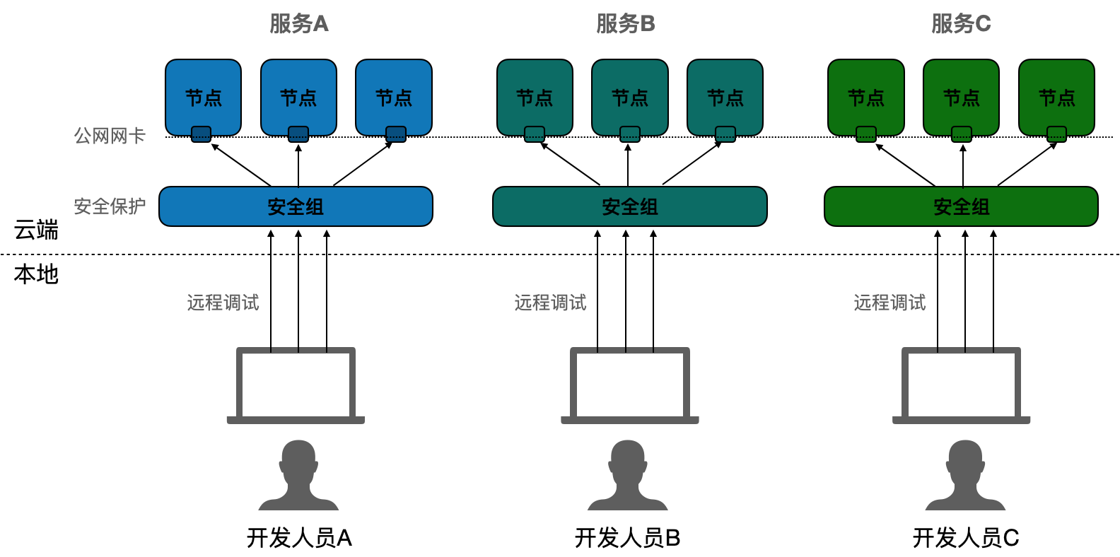 远程调试(Remote Debug)一直都是排查问题的重要手段,但在云原生环境里远程调试并不是一件简单的事情。这是因为在默认情况下云上的微服务节点通常不能被公网访问,如果需要进行远程调试,我们需要对目标节点开放公网访问,并且设置安全策略以放通调试端口流量。