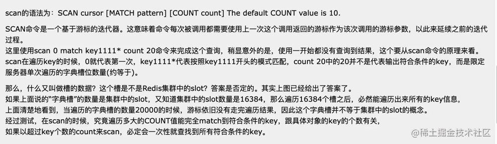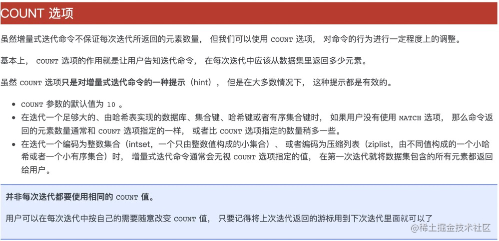 后来经过某个小伙伴的提示,看到了另外一篇对于scan命令count选项通俗的解释: