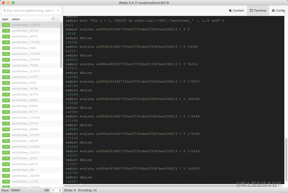 在本地的测试redis环境中,通过执行以下命令mock了20w的测试数据: