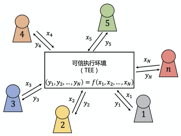 · 步骤1:各个参与方将自己的数据x通过安全链路传输给TEE;