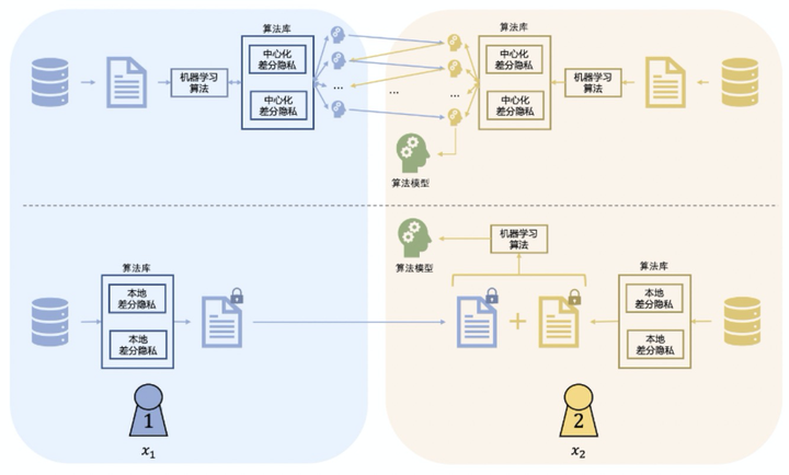 根据隐私安全诉求与训练效率的不同,可以通过MPC、同态加密(Homomorphic Encryption,HE)、差分隐私(定义见下)等多种方式实现联邦学习。