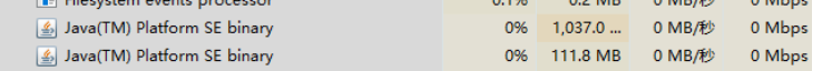 可以看出来相关的多出一个java的进程,并且内存占用1037M,所以也证实了我们的猜测和预想。