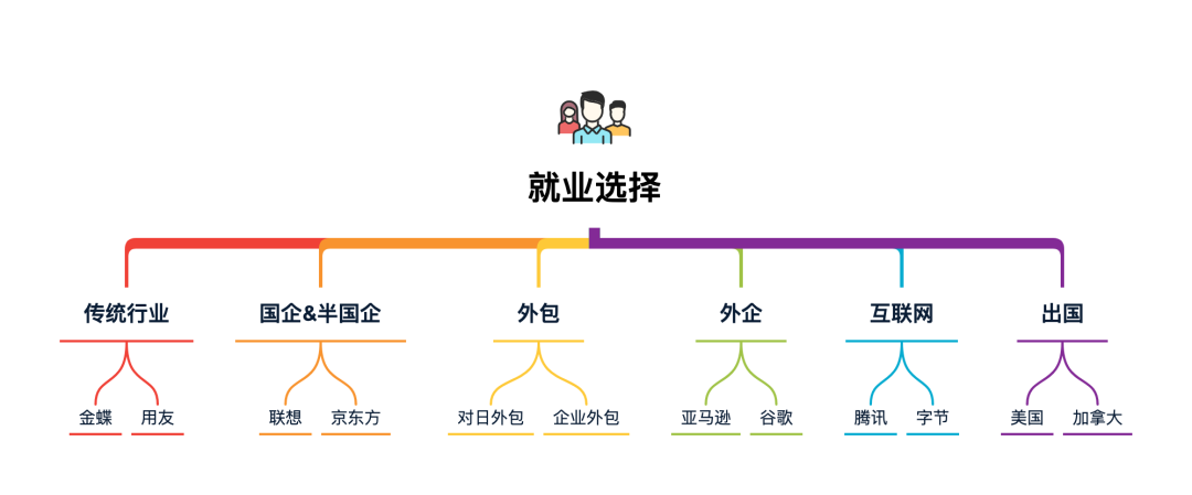 以上就是各类公司的一个简单介绍,每一个人就业时都会有自己的选择,比如想安稳些、想要户口、想要高工资、想不那么加班等等,只要你能对自己的选择负责,合理规划好自己的职业发展,那么就可以了。