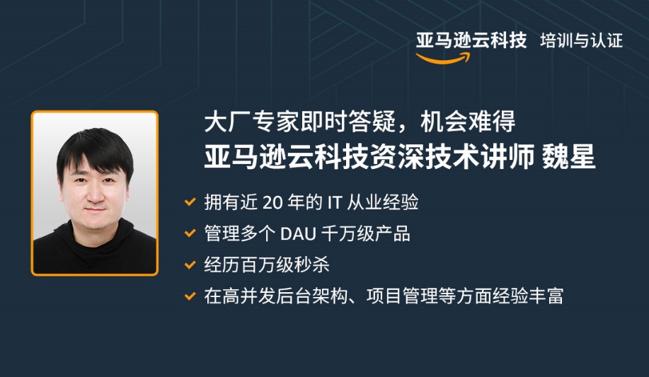 ■ 大神指路,上云不迷路:本课程由亚马逊云科技资深技术讲师魏星亲自授课。课后别走开,还为大家预留了答疑时间,抓住向导师提问的宝贵机会吧!