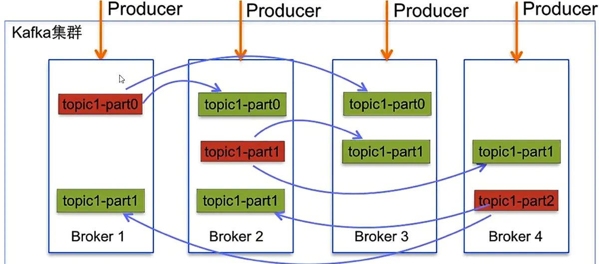 Replica的分散实现了broker同步数据时的写压力并且可以有效避免一个broker宕机。其他的broker的Replica可以顶上,不会造成数据的丢失,对应副本和分区的放置kafka集群会做内部的平衡。