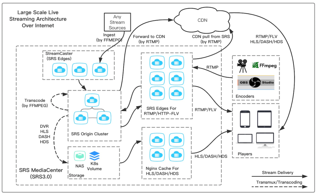 SRS 是一个简单高效的实时视频直播服务器,支持 RTMP / WebRTC / HLS/ HTTP-FLV / SRT / GB28181。SRS 的目标是降低音视频的门槛,SRS 主要运行在 Linux 系统上,譬如 Centos 和 Ubuntu,包括 x86、x86-64、ARM 和 MIPS。其他的 OS 可以使用 srs-docker 开发和运行, 比如 macOS、Windows 等。SRS 的系统偏好主要是由于 state-threads 导致的,它极大的简化了服务器在复杂协议的处理。