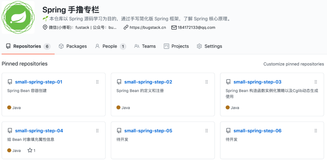 源码实现:https://github.com/small-spring - 拆解实现步骤,搭建组织工程,展示每一个章节的具体源码实现过程,如果你愿意也可以参与到工程建设中