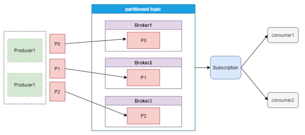 Pulsar的topic是一种partitioned topic,可以被保存到多个broker,提高了topic的吞吐量。