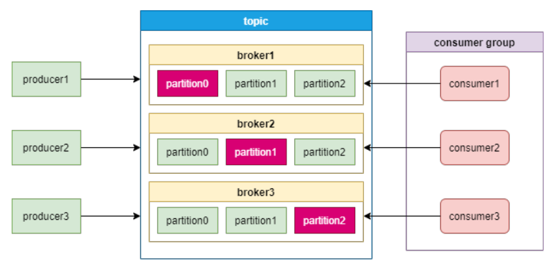 每个topic都会在不同的broker保存多个分区副本,其中只有一个副本的分区是leader分区,供消费者使用。如果某个broker宕机了,这个broker上的leader分区失效,需要在其他broker上重新进行选举。
