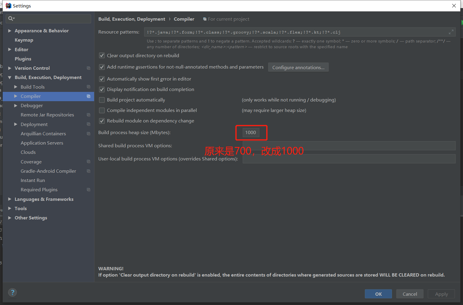 选择File–>Settings...–>Build,Execution,Deployment–>Compiler,按如图修改,点击OK