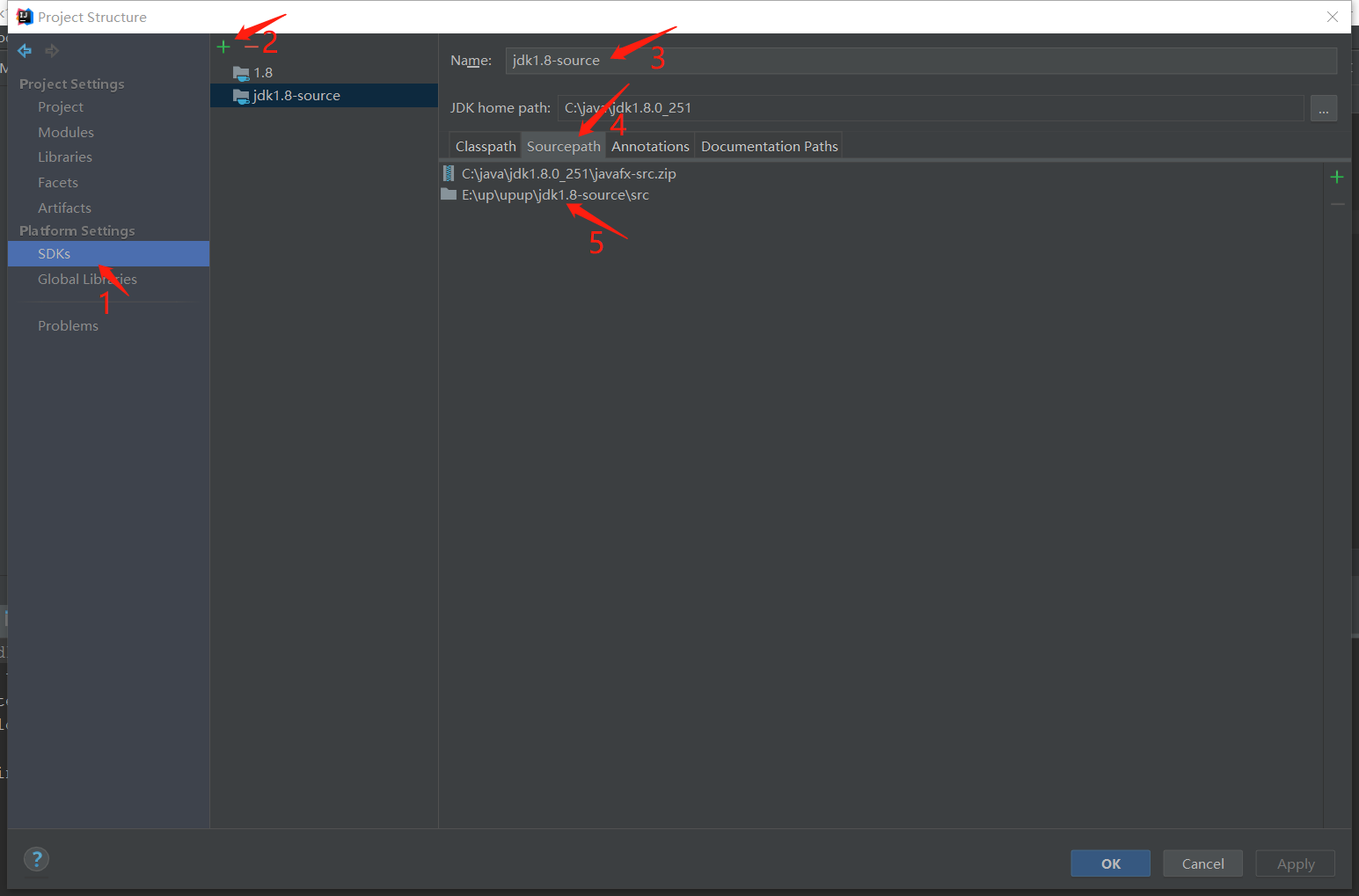 把1.8复制一份,改一下名字,避免混乱,按如图顺序操作,把原来的关联的JDK下的src.zip删掉,然后把源码的src关联上,最后点击OK