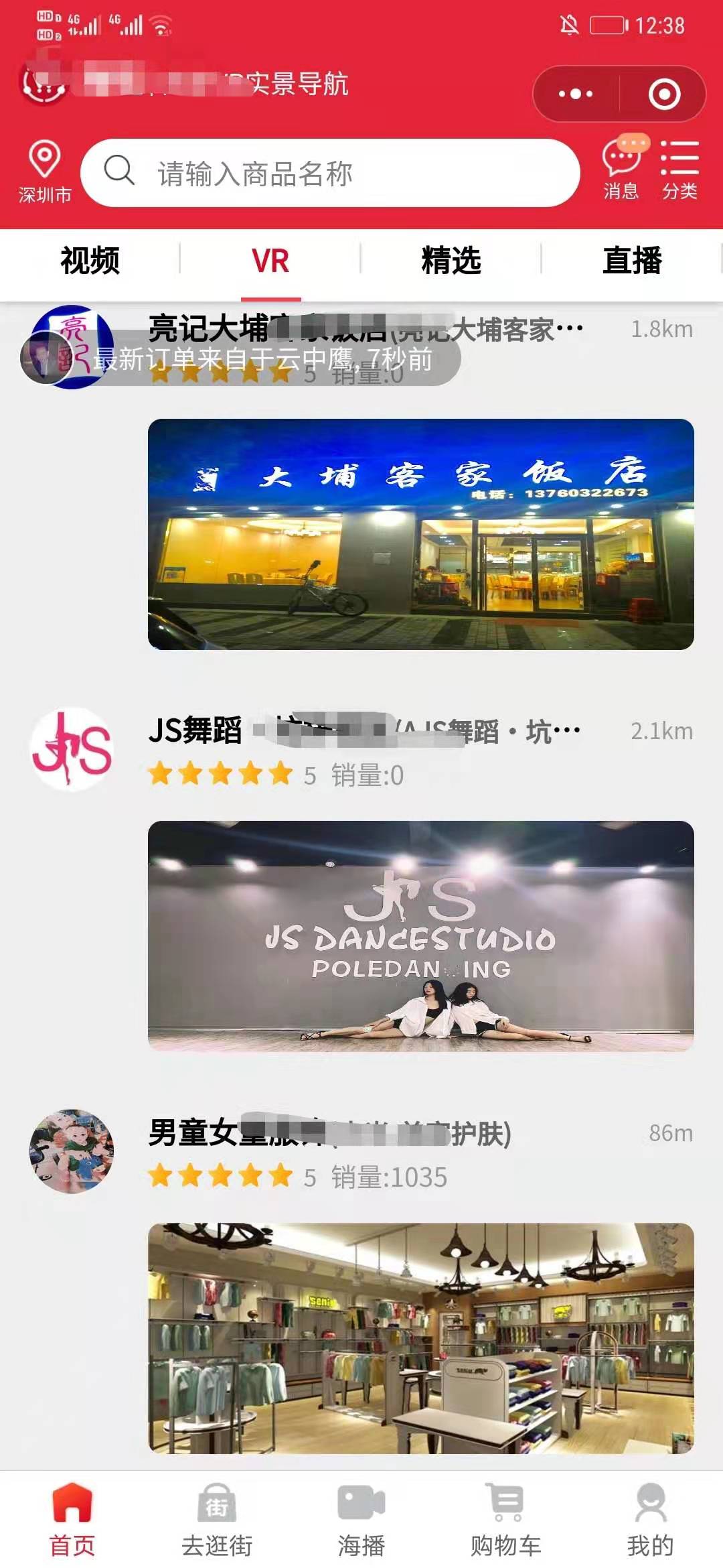VR全景区:通过定位,平台将本地城市附近入驻的商家以VR全景模式展示给用户,提供用户线上体验并消费