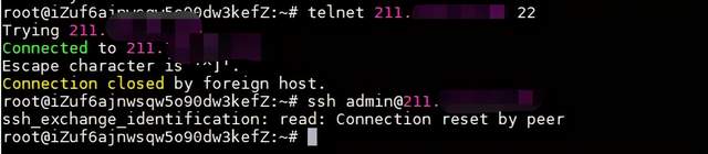 telnet 22端口,端口开放,但是ssh连接则又显示不可达,如下: