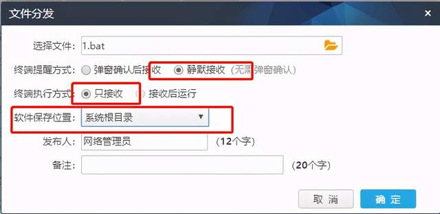 然后编写bat,通过文件分发,下发到目标上。bat内容如下: