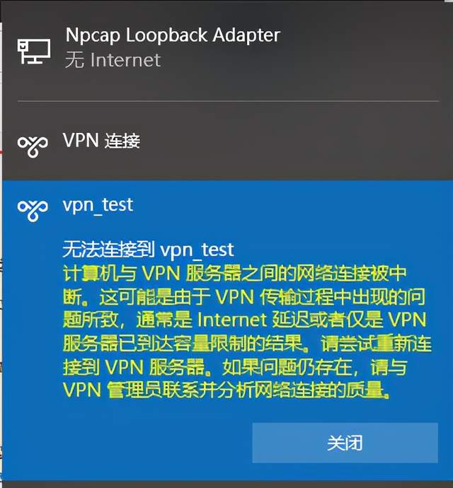 保存后,连接VPN,会报如下错误: