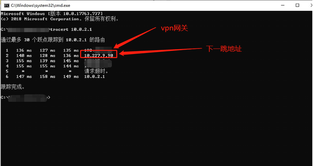 然后访问客户给的某个系统 10.0.2.1,无法访问,tracert一下跟踪一下路由,看通不通。